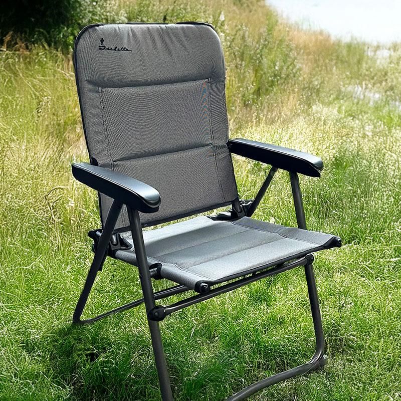 De rugleuning verstel je in drie standen, zodat je net zo relaxed kunt zitten als de situatie vraagt — van ontbijten tot een momentje rust met een goed boek. De zitting heeft een zachte schuimlaag die extra comfort geeft, terwijl het aluminium frame zorgt voor een stabiele en lichte basis. Deze Isabella campingstoel kan tot 120 kilo dragen en blijft ook bij dagelijks gebruik betrouwbaar.