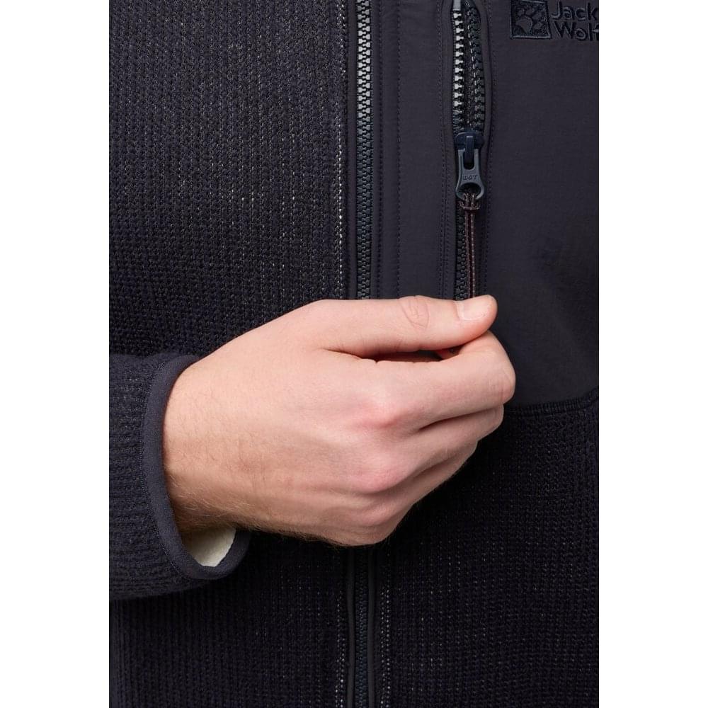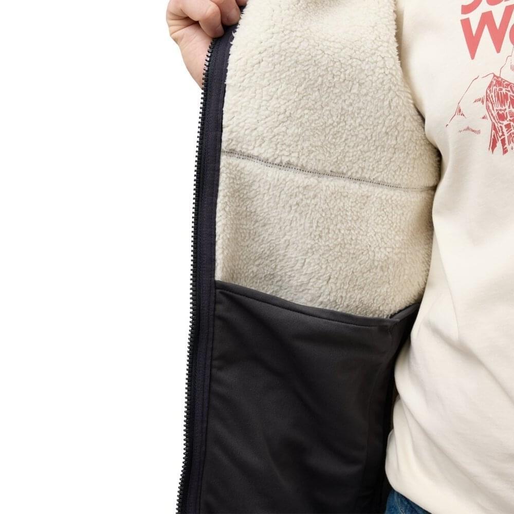 De Kaminfeuer Jas van Jack Wolfskin is vernieuwd en bestaat nu uit 300 g gemêleerd Sherpa-Fleece. Hij houdt je goed warm en voelt comfortabel aan. In de twee steekzakken met ritssluiting kun je je benodigdheden veilig opbergen. De ruime mouwen zijn gevoerd en zorgen ervoor dat je jas gemakkelijk over je kleding eronder gaat.