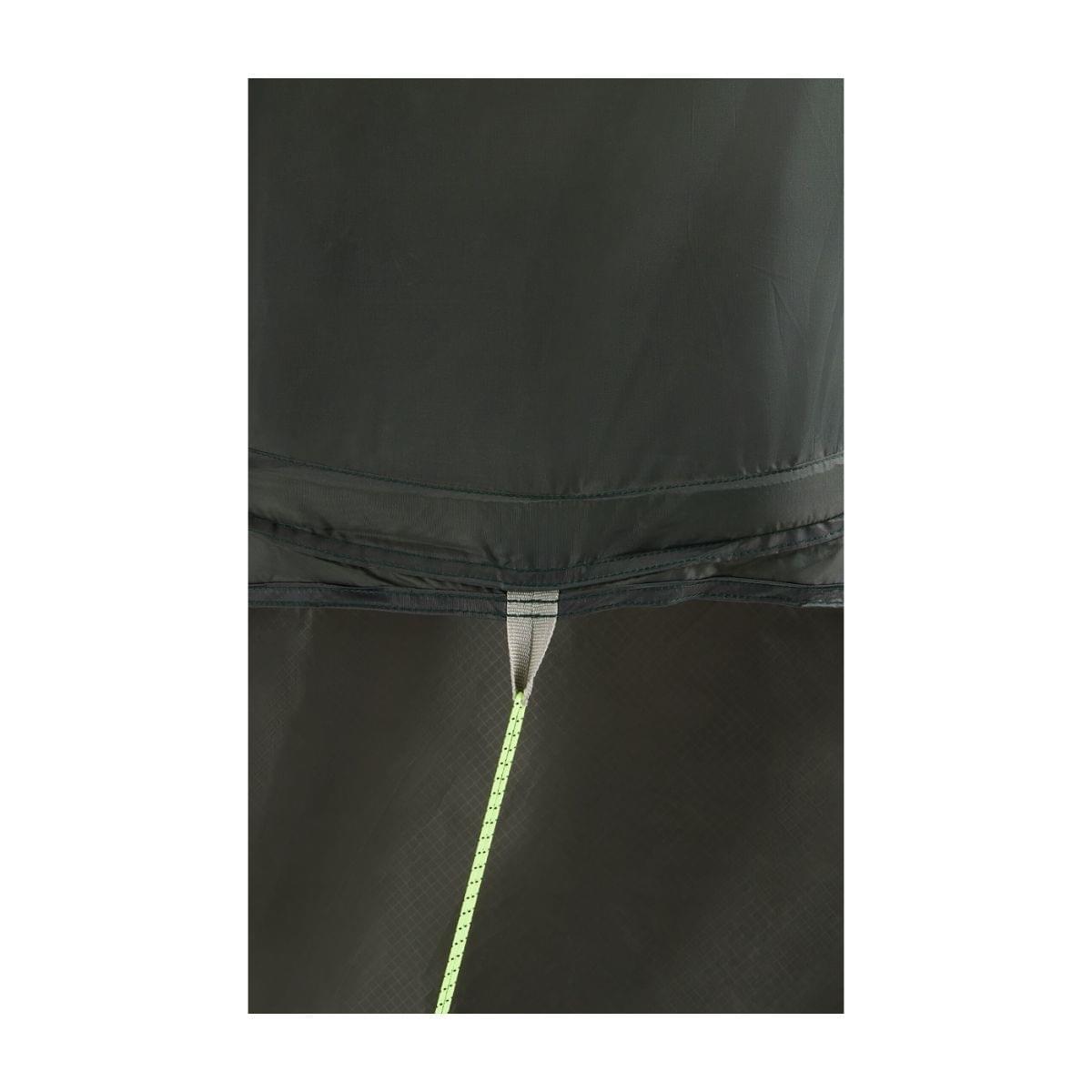 De binnenzijde van de tunneltent is voorzien van een muggennet, zodat je ongestoord kunt genieten van de frisse lucht zonder last te hebben van insecten. Een kleine opbergruimte biedt voldoende ruimte om je bagage binnen handbereik te houden, terwijl de enkele ingang zorgt voor een gemakkelijke toegang tot de tent.