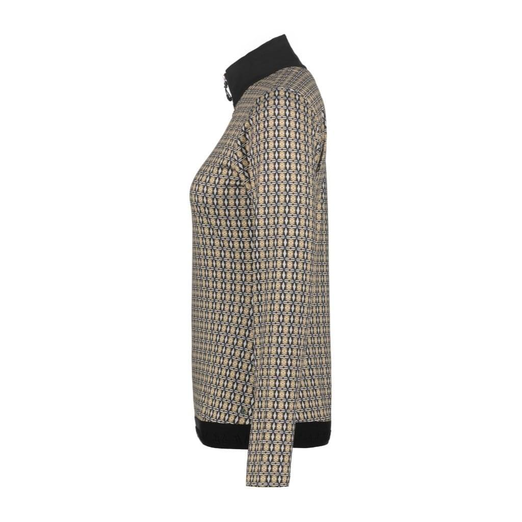 De Jamali van Luhta is een stijlvol shirt met lange mouwen, opstaande kraag en een unieke print.