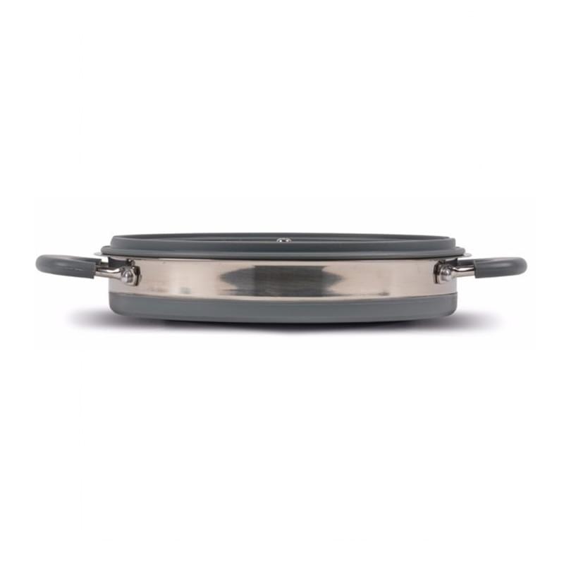 Deze opvouwbare pan van Kampa bespaart een hoop opbergruimte. Een groot deel van de pan kan namelijk opgevouwen worden, wat deze half zo hoog maakt. Ideaal wanneer je niet veel opbergruimte hebt, zoals bijvoorbeeld op de camping. De pan heeft een inhoud van 1,5 liter en wordt geleverd met glazen deksel en geïsoleerde handvaten. De pan zelf is gemaakt van RVS in combinatie met siliconen (hittebestendig, geurloos, smaakloos).