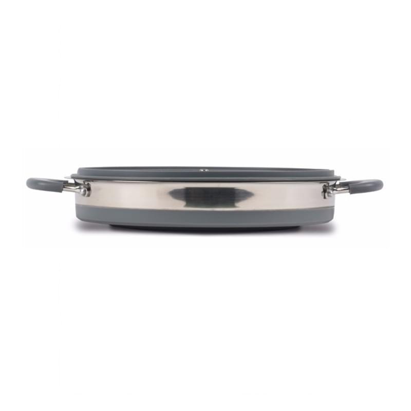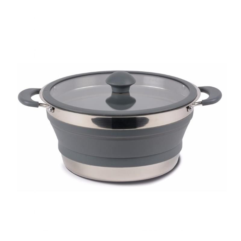 Deze opvouwbare pan van Kampa bespaart een hoop opbergruimte. Een groot deel van de pan kan namelijk opgevouwen worden, waardoor deze half zo hoog wordt. Ideaal wanneer je niet veel opbergruimte hebt, zoals bijvoorbeeld op de camping. De pan is gemaakt van RVS in combinatie met siliconen (hittebestendig, smaakloos, geurloos). De pan heeft een inhoud van 3 liter en wordt geleverd met glazen deksel en geïsoleerde handvaten.