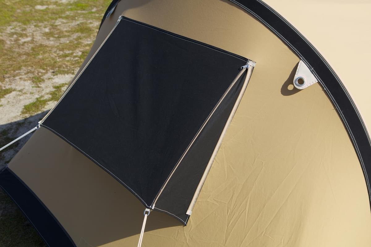 De tunnel vorm van de Novia bijzettent is er een die bewezen heeft dat het sterk en betrouwbaar is. Daarbij is een model met deze vorm altijd en overal makkelijk op te zetten. Zeker nu Karsten het frame aan de buitenkant heeft geplaatst en er een vaste vloer in zit. Je legt de tent uit op de grond waar je deze wilt hebben. Zorg ervoor dat alle ritsen dichtzitten en zet de 4 hoeken vast met een haring. Leg het frame door de sleuven en dichtritsen maar. Zet de tent overeind, afspannen en klaar!