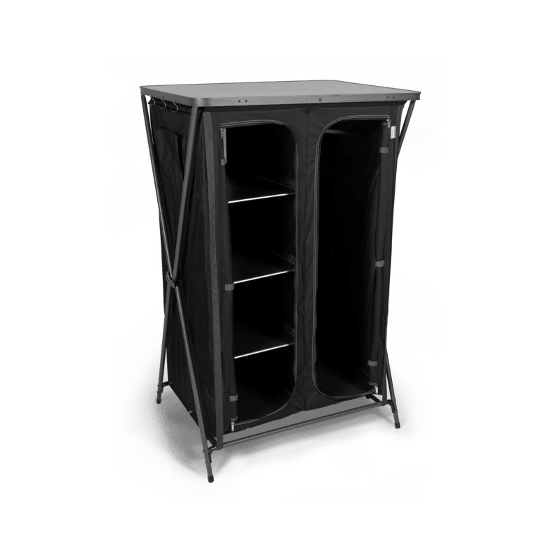 Na gebruik klap je de kast eenvoudig in tot een compact formaat. De bijgeleverde draagtas zorgt ervoor dat je de kast gemakkelijk meeneemt in de auto of caravan en moeiteloos opbergt wanneer je thuis bent.