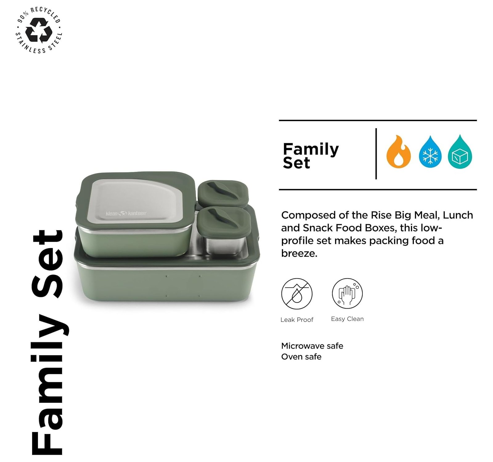 De Klean Kanteen set is gemaakt met gerecycled roestvrij staal en voedselveilig siliconen. Geen plastic, geen nare geurtjes. De bakjes zijn licht, stapelbaar, lekvrij en supersterk. Ook fijn: Je kunt ze gewoon in de vaatwasser zetten, dus schoonmaken is zo gepiept. En dankzij de Strong-as-Steel garantie heb jij jarenlang plezier van deze set