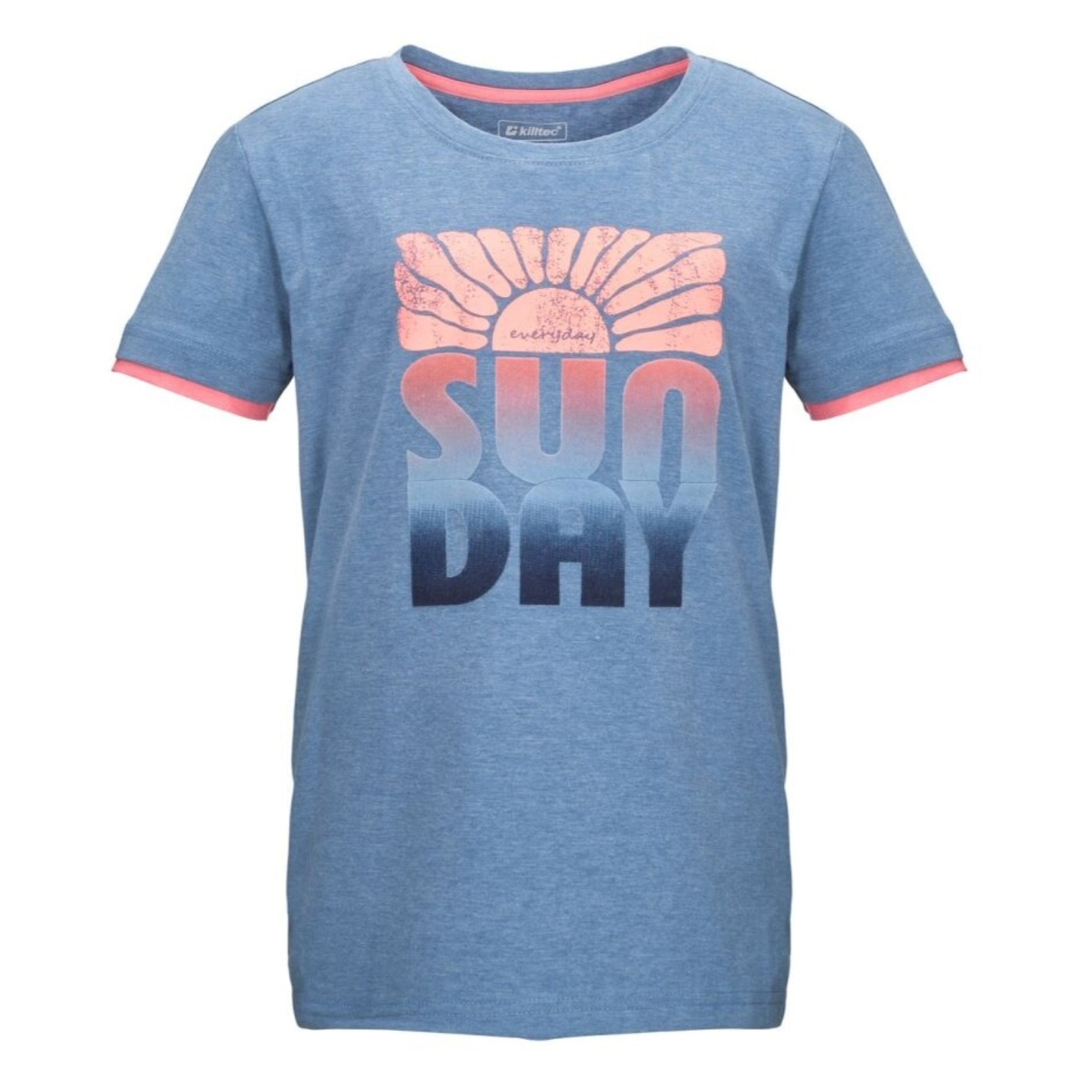 Met het Kos 133 T-shirt van Killtec schijnt elke dag de zon. Dit leuke shirt voor meisjes heeft een toffe print op de voorkant. Ook de mouwen zijn voorzien van contrasterende stof wat een leuke twist geeft. Het elastaan maakt hem ook nog eens lekker flexibel. Met dit T-shirt kom je altijd goed voor de dag.