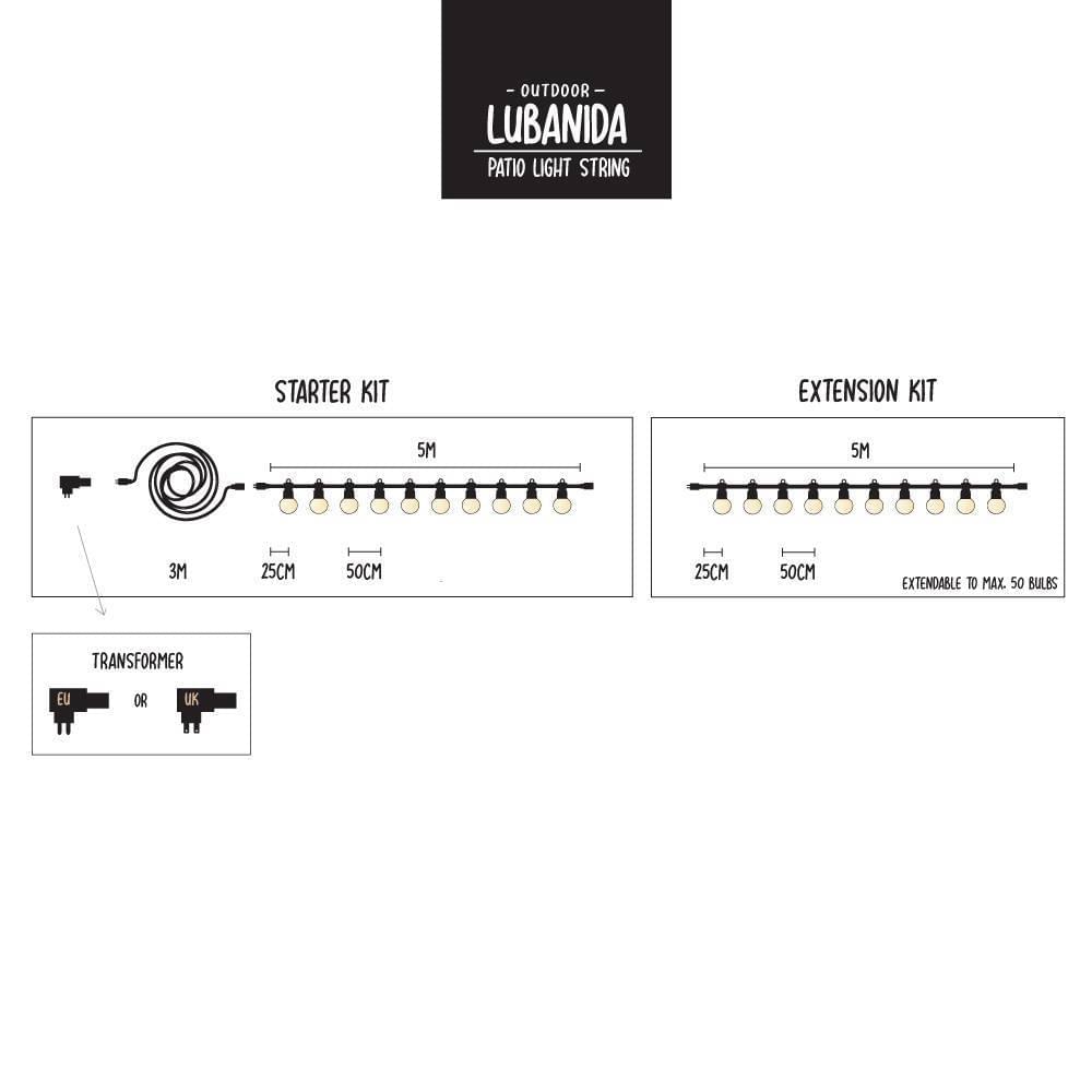 - Je kan deze verlichting verlengen tot 50 lampen op een stekker