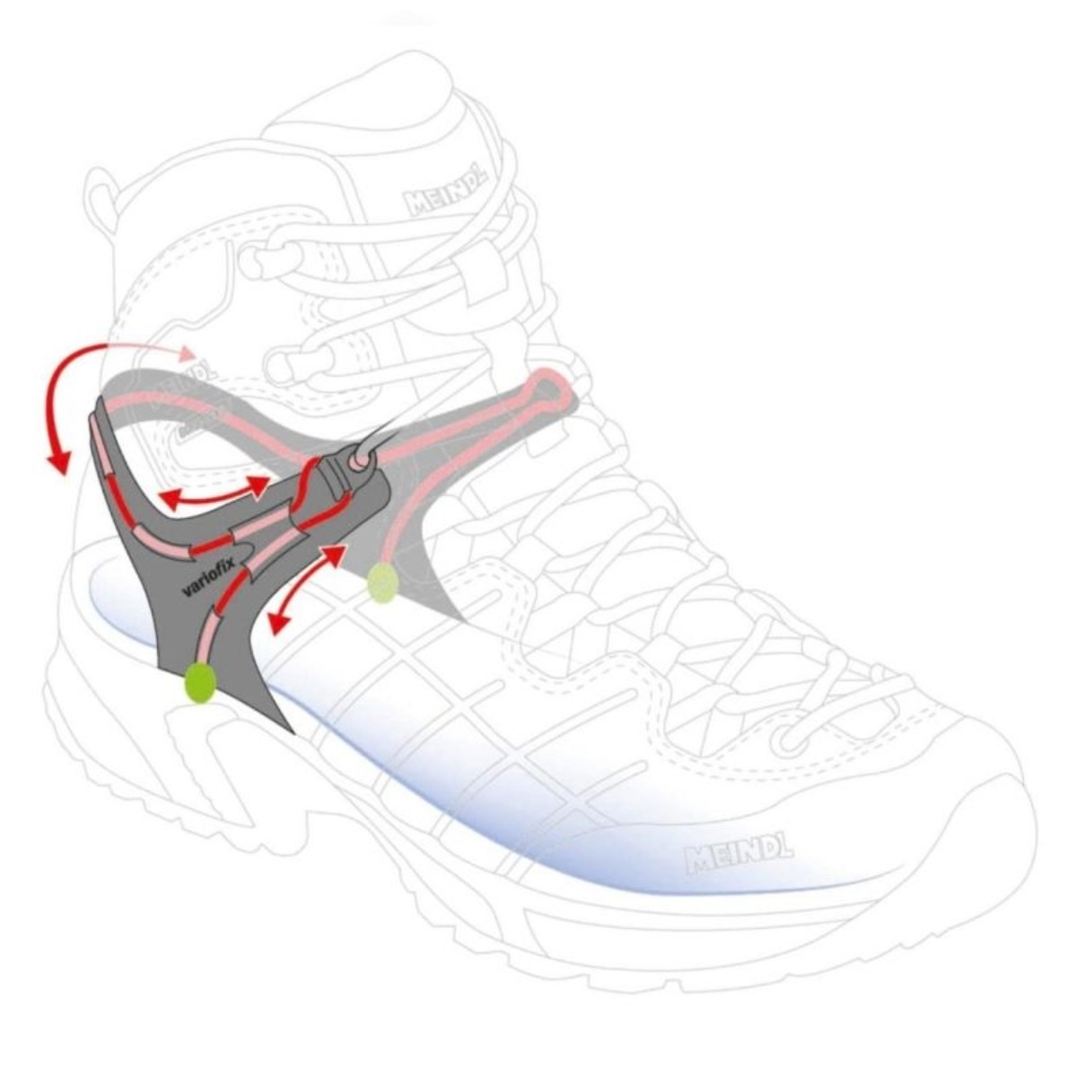 In de Lite Hike GTX van Meindl is er gebruik gemaakt van het variofix systeem. Hierbij loopt er een vrij beweegbare kabel achter de hiel langs die met het aantrekken van de veter voor een optimale fixatie van de hak zorgt. Zo creëer je een pasvorm waarbij je doorgaans geen last meer hebt van een slippende hak in je wandelschoen.
