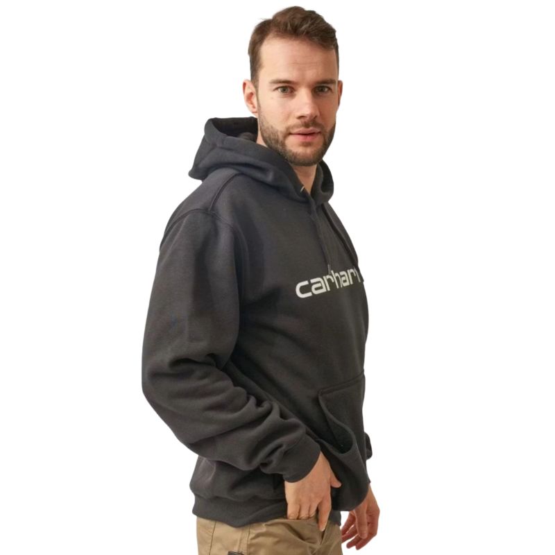 Door de rekbare, met elastaan geribde boord en manchetten sluit hij netjes aan. Met de vaste capuchon blijft je hoofd ook lekker warm en met het trekkoord kan je hem afstellen. Het sweatshirt heeft een print met het logo van Carhartt op de voorkant wat zorgt voor een casual uitstraling.