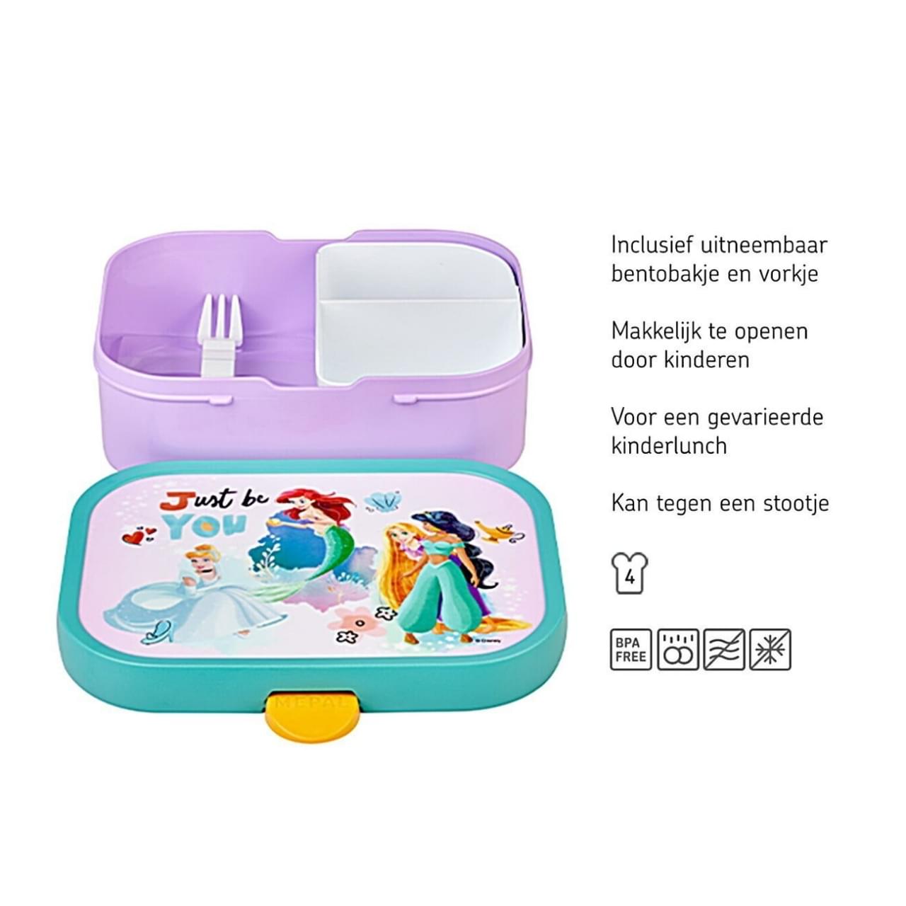 Deze Mepal Campus Lunchbox is voorzien van een leuke Disney Princess opdruk. In de broodtrommel passen met gemak 4 boterhammen. Wanneer je van variatie houdt kun je met het meegeleverde bentobakje ook de trommel in verschillende delen opdelen. Zo heb je naast je boterhammen ook plek voor andere lekkere dingen, zoals wat fruit of nootjes. De broodtrommel is BPA-vrij en vaatwasmachinebestendig.