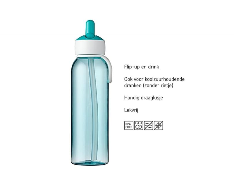 Met deze vrolijke Flip-up Waterfles wordt het drinken van water voor de kids een stuk makkelijker. De Campus fles van Mepal is namelijk transparant zodat ze precies kunnen zien hoeveel ze al gedronken hebben. De tuit is verbonden met een rietje, ook dat zorgt ervoor dat hij lekker makkelijk drinkt. En zelfs de kleinst handjes kunnen hem openen, even klikken en drinken maar. Vinden ze koolzuurhoudende drankjes lekker? Ook die kunnen ze meenemen in de Flip-up Campus waterfles!