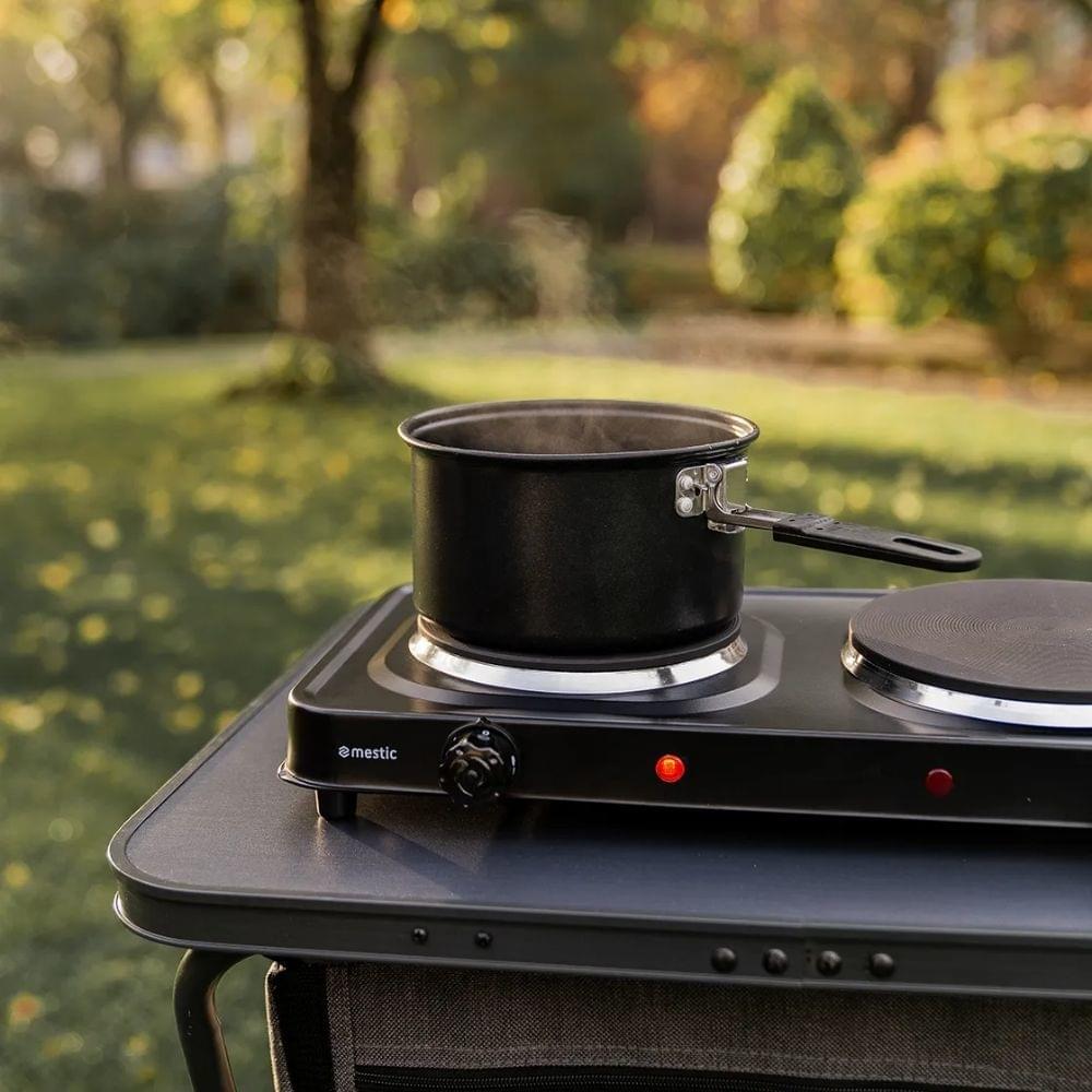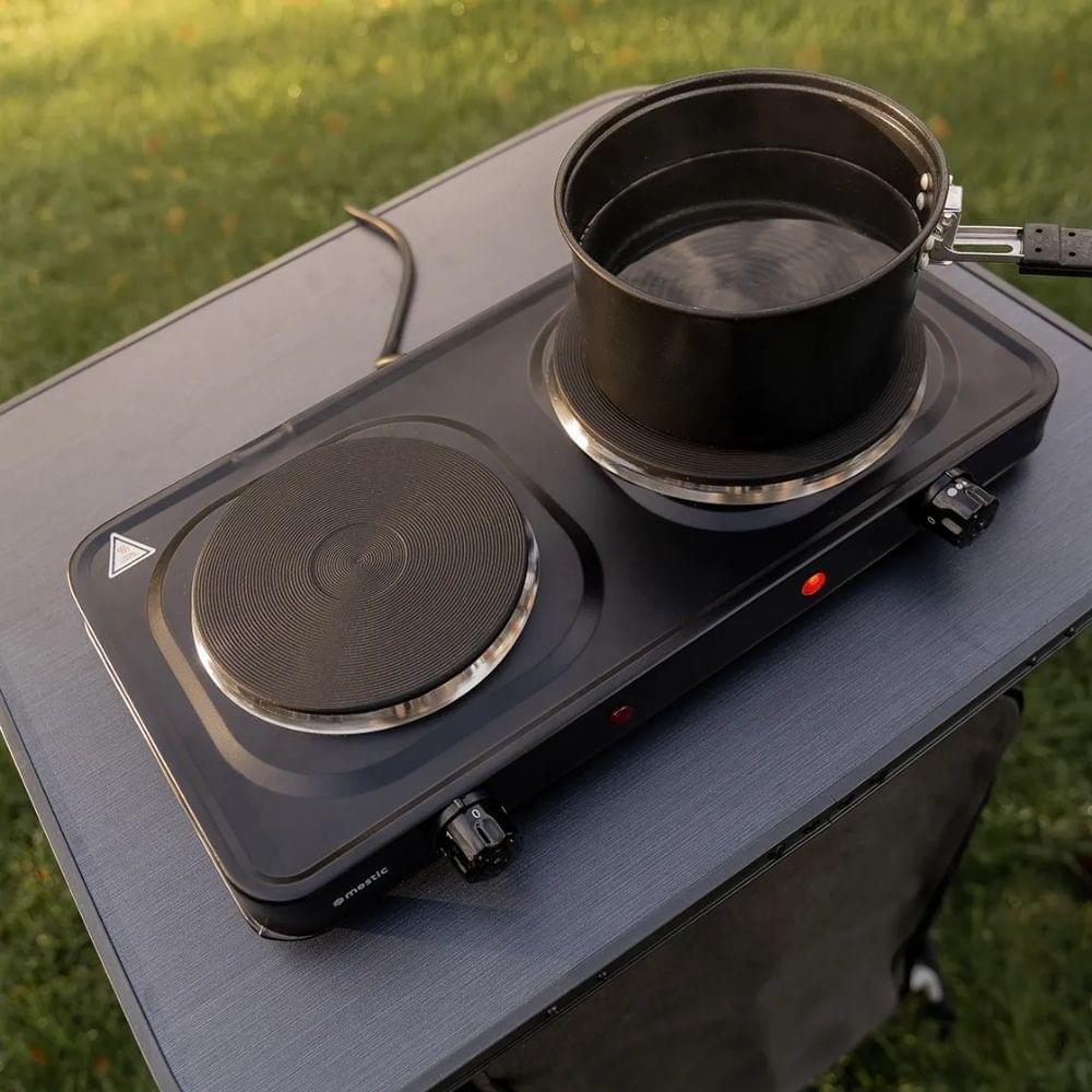 Met deze 2-pits Kooktoestel van Mestic bereid je eenvoudig het avondeten. Doordat de MKT-200 vrijstaand is kan je hem overal plaatsen en is hij ook geschikt voor de wat grotere pannen (het kookoppervlak heeft een diameter van 15 cm en 18 cm). De temperatuur stel je in met de traploos regelbare thermostaat. De kookplaat beschikt over een overhittingsbeveiliging.