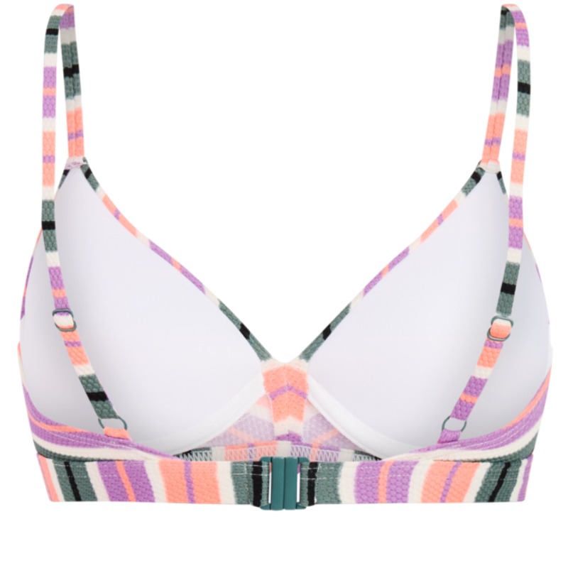 Zon, zee, strand en een comfortabele ondersteunende bikini top. Wat wil je nog meer?! Met dat laatste kunnen wij je helpen. De Mix & MatchAdairau Bikini Top van Protest ziet er trendy uit dankzij de gebruikte reliëf structuur en de vrolijk gekleurde strepen.