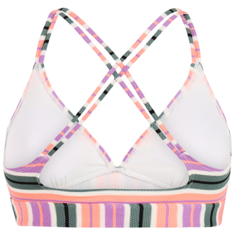 Zon, zee, strand en een comfortabele Bikini Top. Wat wil je nog meer?! Met dat laatste kunnen wij je helpen. De Mix & MatchSupera Triangle bikini top van Protest ziet er trendy uit dankzij de gebruikte reliëf structuur en de vrolijk gekleurde strepen. Daarnaast zit hij ook nog eens superfijn. De uitneembare pads zijn sneldrogend en zorgen samen met de gekruiste bandjes voor extra stevigheid.