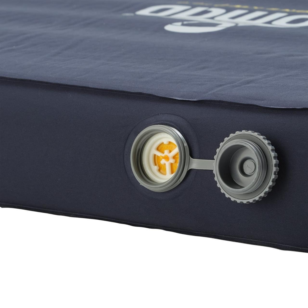 De Dreamzone XW 10.0 van Nomad heeft één groot ventiel waarmee je de mat gemakkelijk op kunt blazen en leeg laten lopen. Dit ventiel is in drie standen te gebruiken; open, inflate en deflate. De inflate stand kun je gebruiken om met de stuffsack de mat eventueel wat bij te blazen.