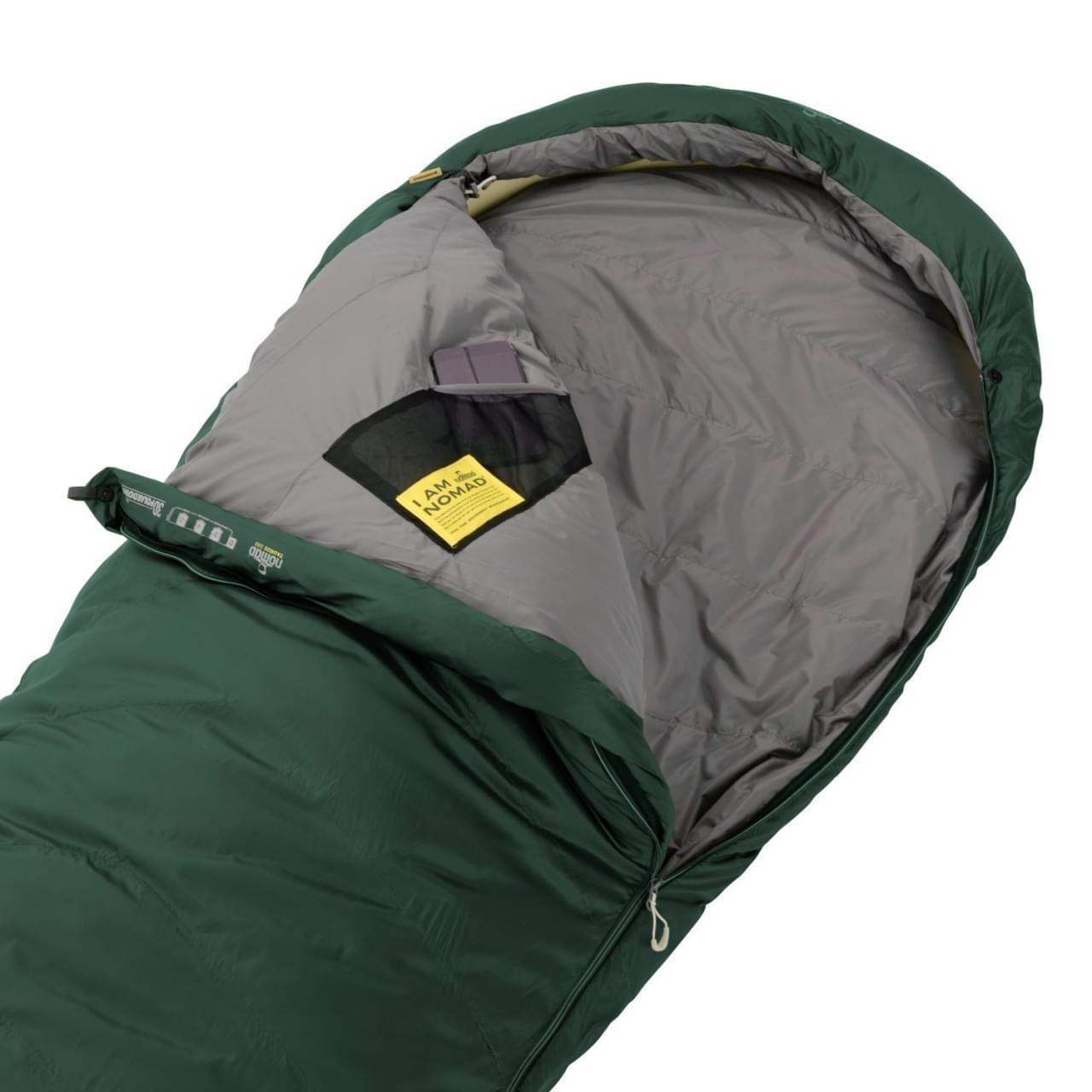 De Nomad slaapzak is voorzien van een tochtstrip bij de ritssluiting zodat het om je heen overal goed warm blijft. De 2 wegritssluiting is voorzien van een niet vastlopende rits constructie. Aan de binnenkant van de mummy slaapzak zit een opbergvakje zodat je je waardevolle kleine spullen dichtbij je hebt. De compressiezak zorgt ervoor dat je de Taurus 500 van Nomad in een klein pakketje mee kan nemen.