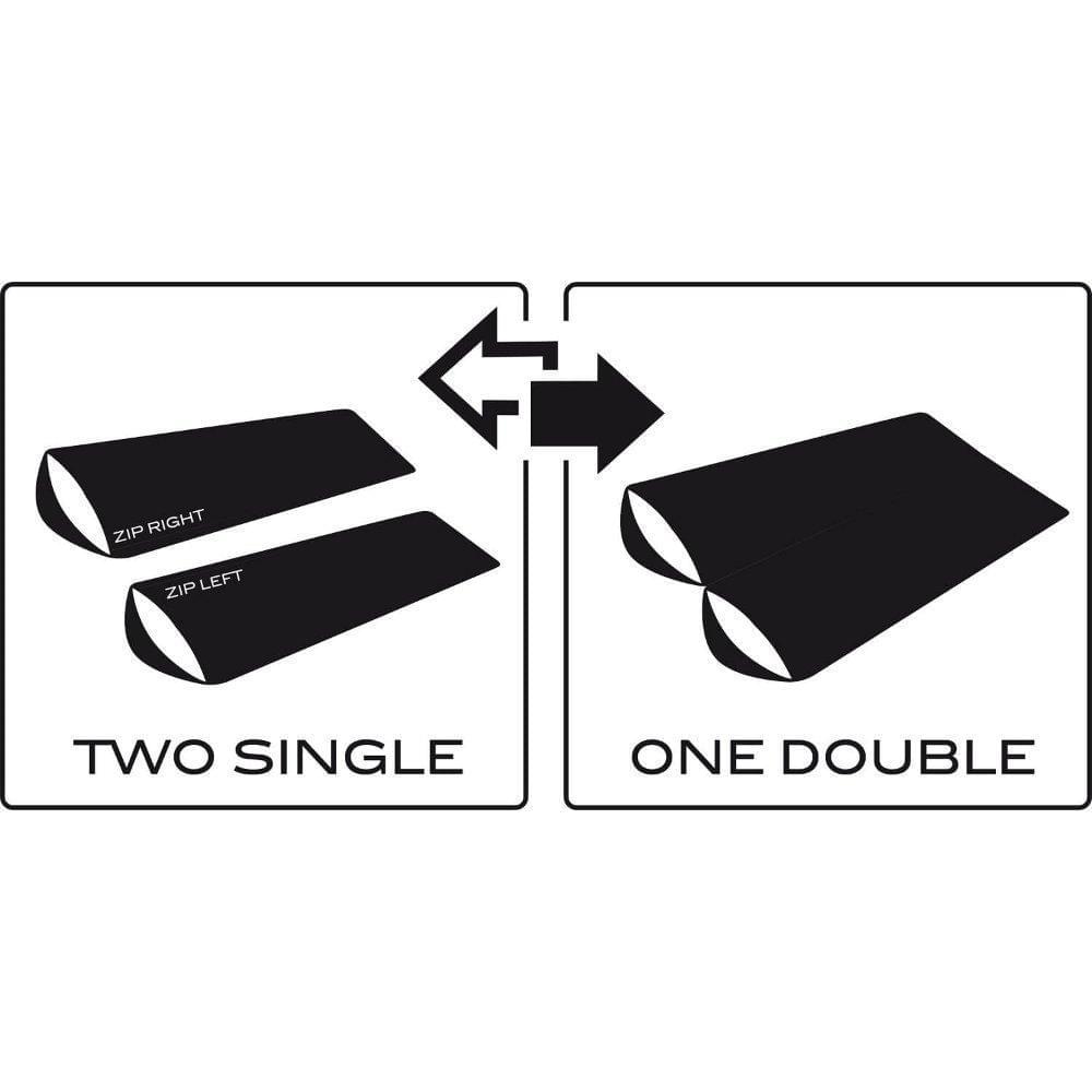 - Eventueel tweede slaapzak aan te ritsen (rechts en links model)