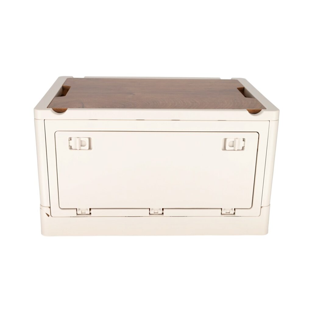 Deze veelzijdige Krat met Houten Deksel van Norländer is een echte alleskunner. Dankzij het slimme ontwerp, waarbij alle zijkanten en bovenkant open kunnen, is hij heel praktisch in gebruik. Gebruik ‘m als opberger voor je spullen of als handige bijzettafel op de camping.