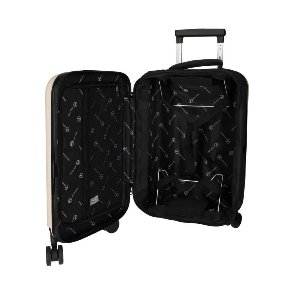 Binnen vind je een ruim hoofdcompartiment voorzien van banden met gespen om je bagage vast te zetten. Ook is er een ritsvak met extra netzakje voor kleine spulletjes. Zo blijft alles netjes en overzichtelijk. En het mooiste? Hij voldoet aan de IATA-handbagage-eisen, dus je mag ‘m gewoon meenemen in het vliegtuig.