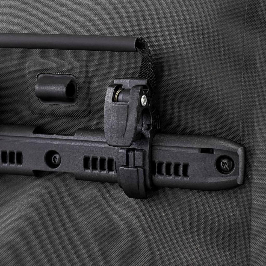 Is het een rugzak of een fietstas? Nou… beide! De Vario Fiets Rugzak van Ortlieb combineert het beste van twee werelden. Aan de ene kant van de tas zit het Quick Lock 2.1 bevestigingssysteem verborgen. Aan de andere kant zitten verstelbare, gepolsterde schouderbanden, een borstband en een comfortabel rugpand voor optimaal draagcomfort. Een flap met ritsvak bedekt de kant die niet gebruikt wordt. Deze sla je eenvoudig om en zet je vast. Natuurlijk is de tas water- en vuilafstotend, zodat je hem probleemloos kunt gebruiken voor school, dagjes uit of stedentrips.