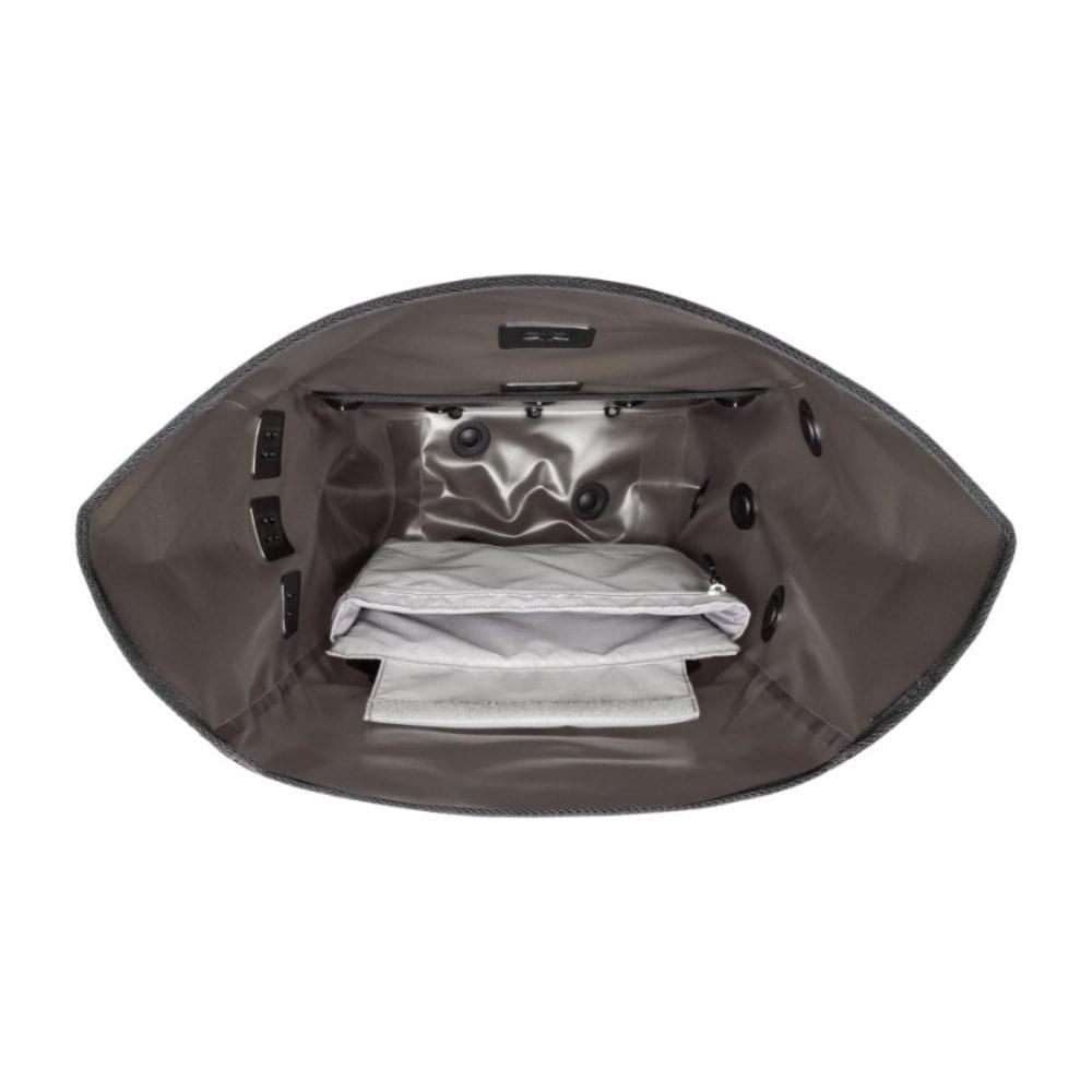 En nu de binnenkant van de Vario Fiets Rugzak: daar vind je een gepolsterd laptopvak en een opbergvak met rits. Dit systeem zit met klittenband vast en kan je eenvoudig verwijderen. Zo creëer je ruimte voor andere spullen. En dankzij de 20 liter inhoud kan je best wat spullen kwijt. Ortlieb levert een bodemplaatje mee voor onder in de tas waardoor de tas makkelijker blijft staan.
