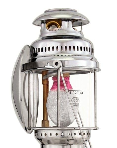 De Petromax HK 500 word standaard geleverd met een funnel, filter, kousjes en een onderhoudssetje.