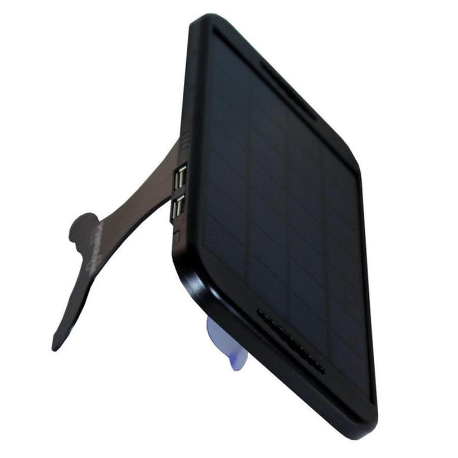 De POWERplus Camel is een handige en draagbare zonne-oplader waarmee je altijd stroom bij de hand hebt. Dankzij de geïntegreerde standaard plaats je het zonnepaneel eenvoudig en snel in de ideale positie naar de zon. Liever aan het raam hangen? Gebruik dan de meegeleverde zuignappen. Android en IOS software hebben laadbeveiligingen ingebouwd. Daarom kan je het opladen van mobiele telefoons het beste doen bij stabiel en zonnig weer. Met een 3W zonnepaneel en 2 USB-uitgangen laad je twee apparaten, bijvoorbeeld powerbanks, tegelijk op. De Camel heeft overigens ook een handige ingebouwde laadindicator.