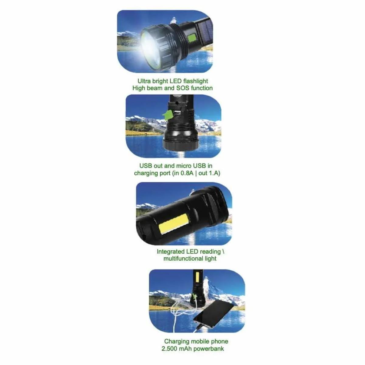 Powerplus - Snake Solar LED Powerbank en Oplaadbare Zaklamp