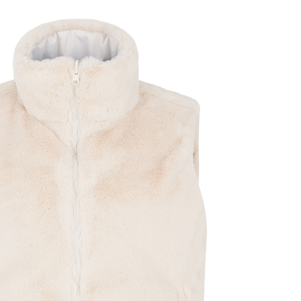 De PRTBOMB van Protest is een outdoor bodywarmer van nepbont (fake fur) voor dames.
