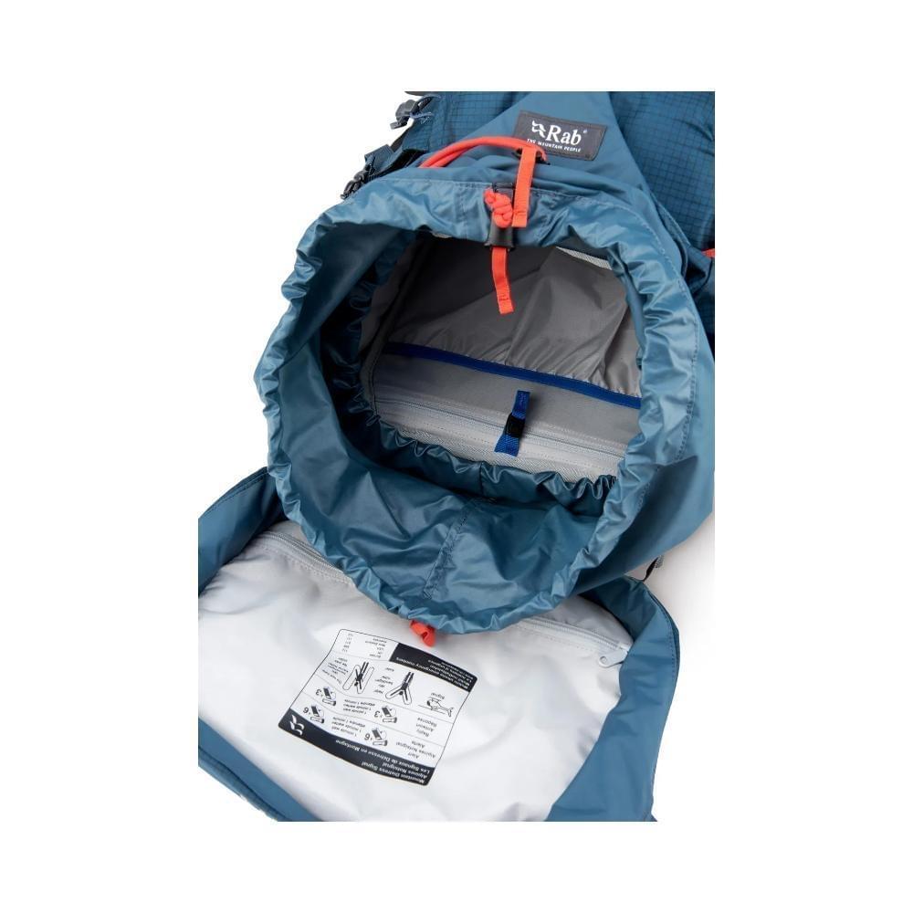De heupband van de RAB Hyperon beweegt mee met je heupen, wat zorgt voor meer bewegingsvrijheid en minder schuren. Dit helpt de tas stabiel te houden, zelfs op oneffen terrein. De rugzak is gemaakt van sterk ROBIC® nylon met Spectra® ripstop, waardoor hij bestand is tegen ruige omstandigheden en langdurig gebruik.