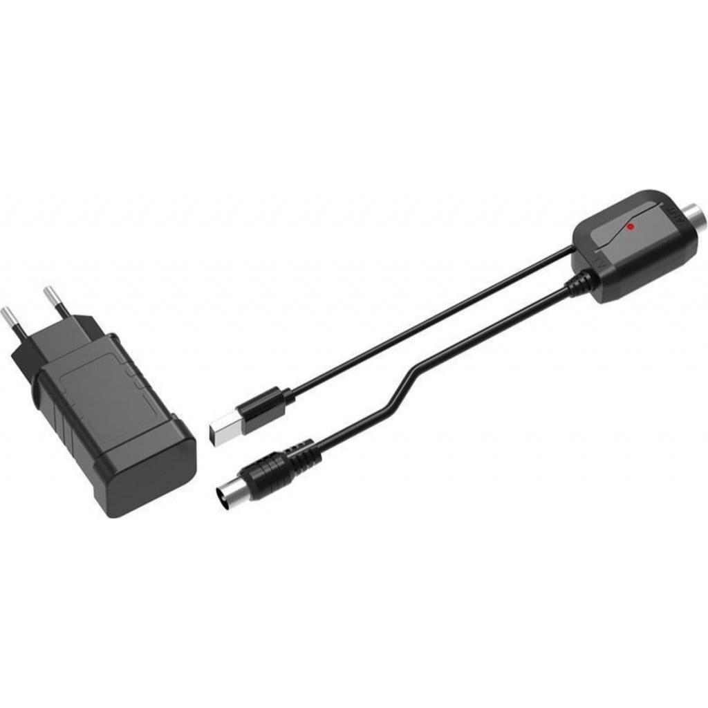 De voedingszijde (USB-aansluiting) kan worden aangesloten op een USB-poort op je tv, pc of laptop om 5 volt voeding naar je actieve DVB-T-antenne te sturen. Met de meegeleverde 230 volt - 5 volt adapter kun je deze stroominvoeging ook aansluiten op het lichtnet.