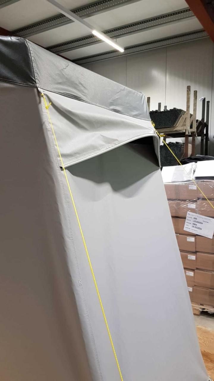 Het tentdoek is gemaakt van 450 gram's PVC. Een materiaal dat gemaakt is om tegen een storm te kunnen en blootstelling aan veel UV straling. Een grondzeil van extra sterk bisonyl en een stalen frame maken deze toilet tent Luxe van Reda een echte seizoenstopper.
