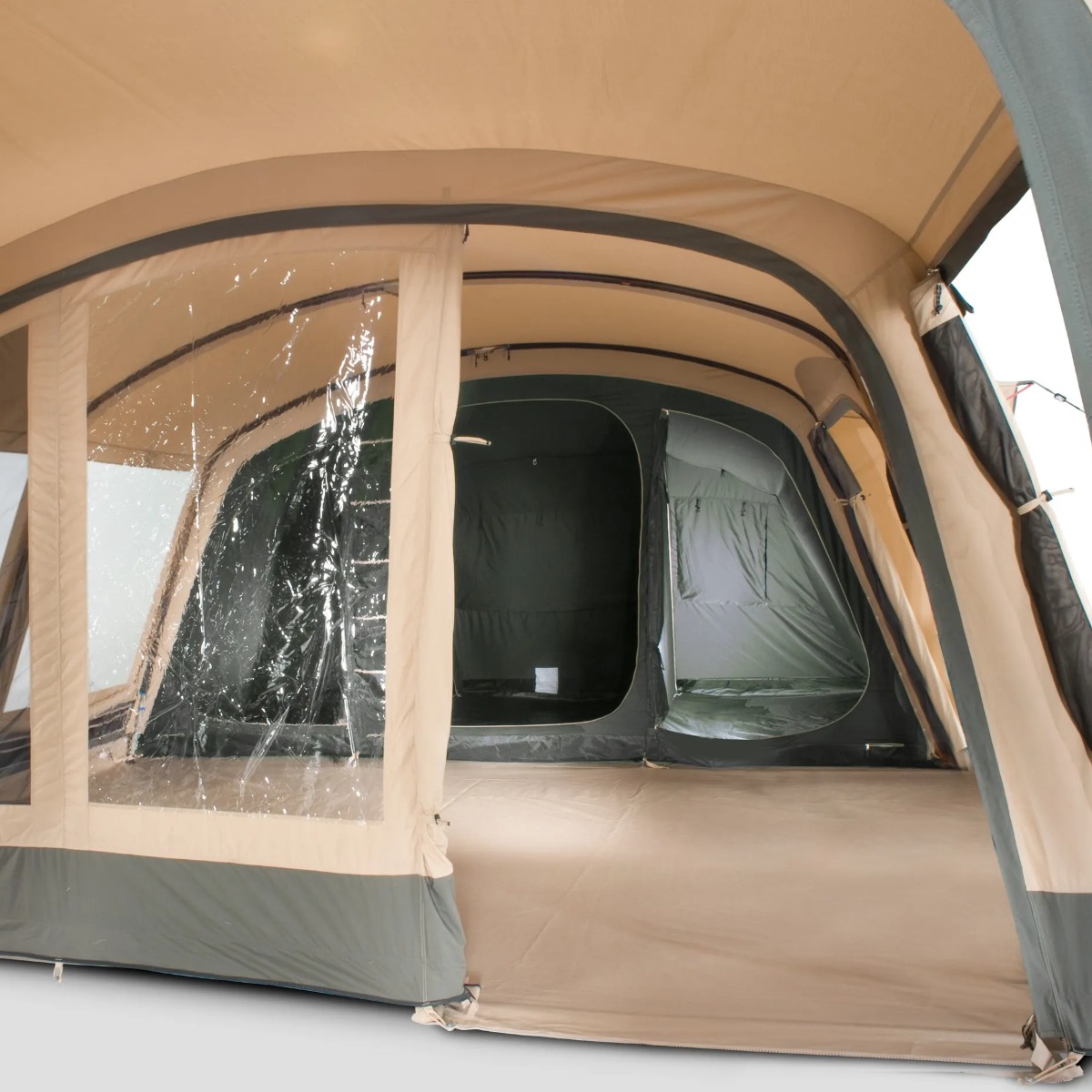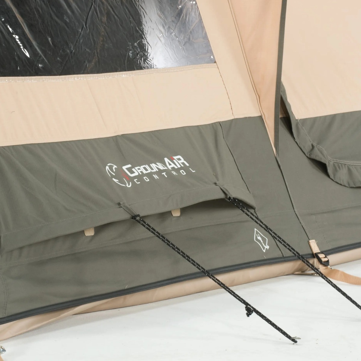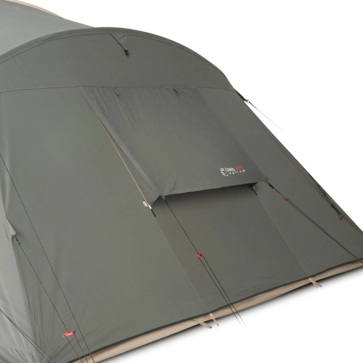 Ventilatie is bij deze tent uitstekend geregeld. Aan de achterzijde en zijkanten zitten ventilatieopeningen die continu open blijven voor een constante luchtcirculatie. Dit draagt bij aan een prettig leefklimaat en helpt condensvorming te verminderen. De zij-ingang is bovendien voorzien van een grote hordeur, zodat frisse lucht binnenkomt terwijl insecten buiten blijven.