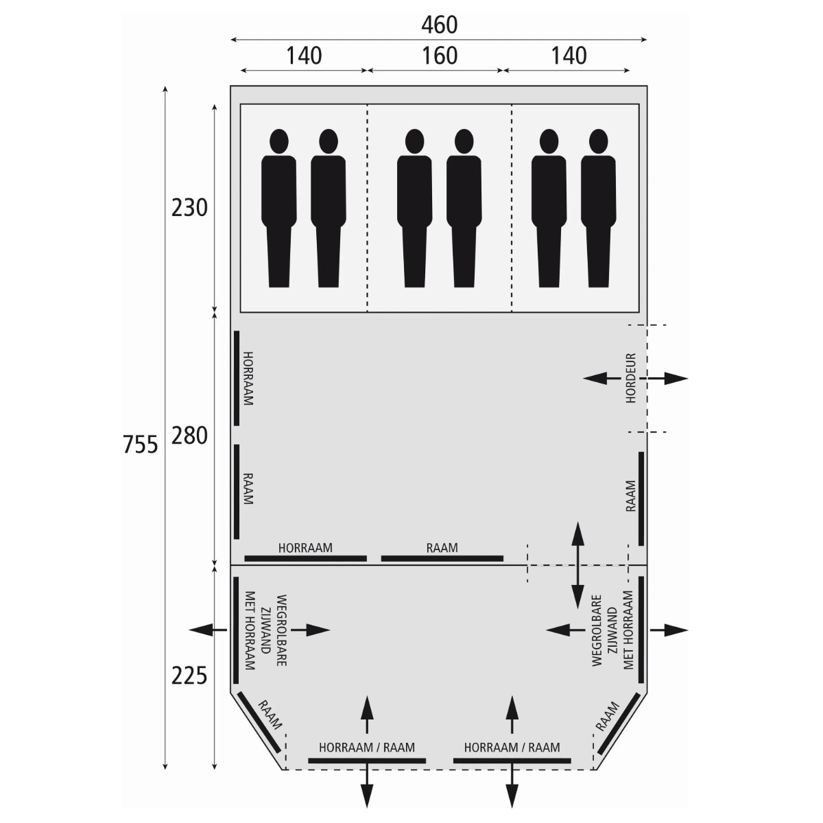 | Breedte buitentent | 460 |