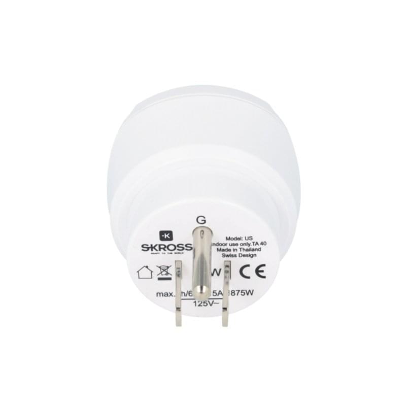 Met een speciale 3-pole stekkeraansluiting is deze reisstekker van Skross een perfect hulpmiddel tijdens je reis door de Verenigde Staten. Stop deze adapter in een geschikt stopcontact en sluit je eigen apparatuur erop aan zonder enige moeite. Overigens is de Europa-aansluiting op deze adapter geschikt voor zowel geaarde als ongeaarde stekkers.