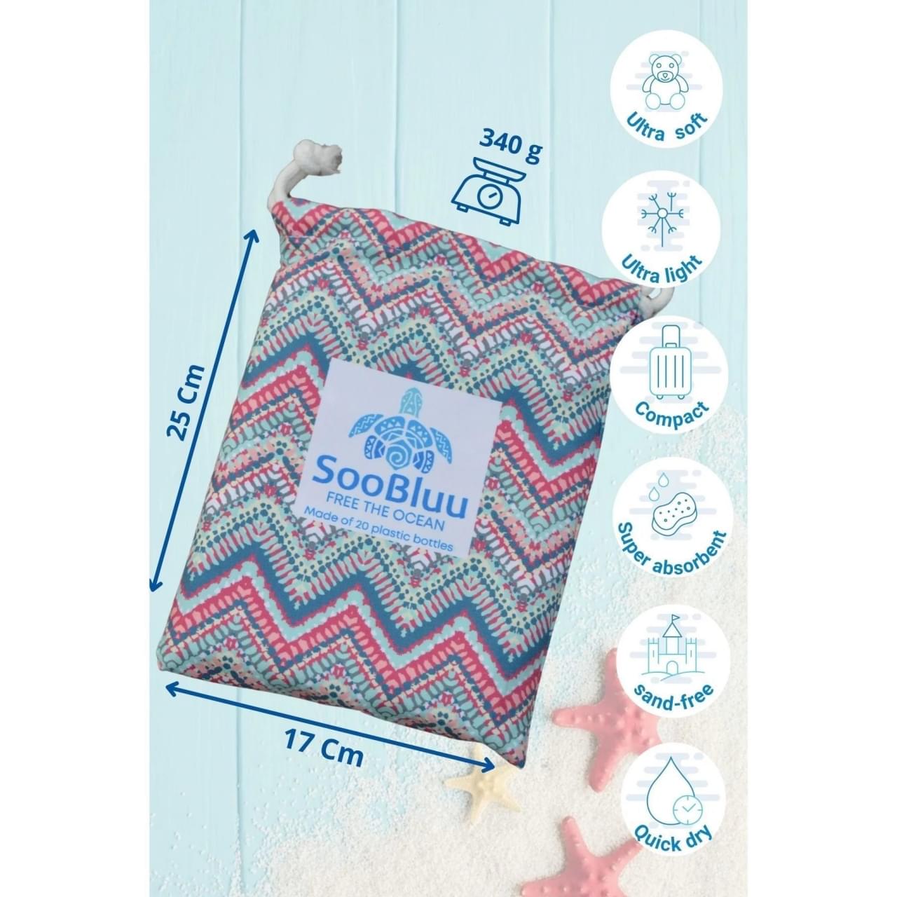 Kleurrijk, zijdezacht, snel droog, super absorberend, antibacterieel, compact en lichtgewicht. Alles wat je van een reishanddoek mag verwachten. Bovendien is deze sneldrogende handdoek van SooBluu zandvrij. Niet alleen fijn om mee te nemen op vakantie, ook naar het strand, de sauna of wanneer je gaat sporten is hij ideaal!