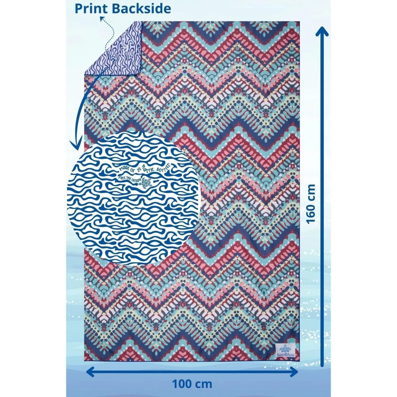 Met de Chevron heb je een reis handdoek die uniek is in zijn soort. SooBluu legt de focus op het maken van duurzame en 100% Fairtrade producten voor een betere toekomst van onze planeet. Alle handdoeken worden gemaakt van gerecyclede PET-flessen, per handdoek worden er ongeveer 20 flessen gebruikt. Soobluu ondersteunt met elke verkochte handdoek de Local Ocean Conservation. Dit is een organisatie die zich inzet voor het behoud van de leefomgeving van de zeeschildpad.