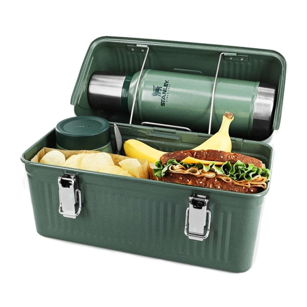 Tijdloos, duurzaam en genoeg ruimte voor je lunch, een tussendoortje, nog een tussendoortje en meer. De Classic Lunchbox heeft daarnaast ook nog een plek voor bijvoorbeeld je travel mug of thermosfles van Stanley. Deze klem je vast met een metalen beugel onder de halfronde deksel.