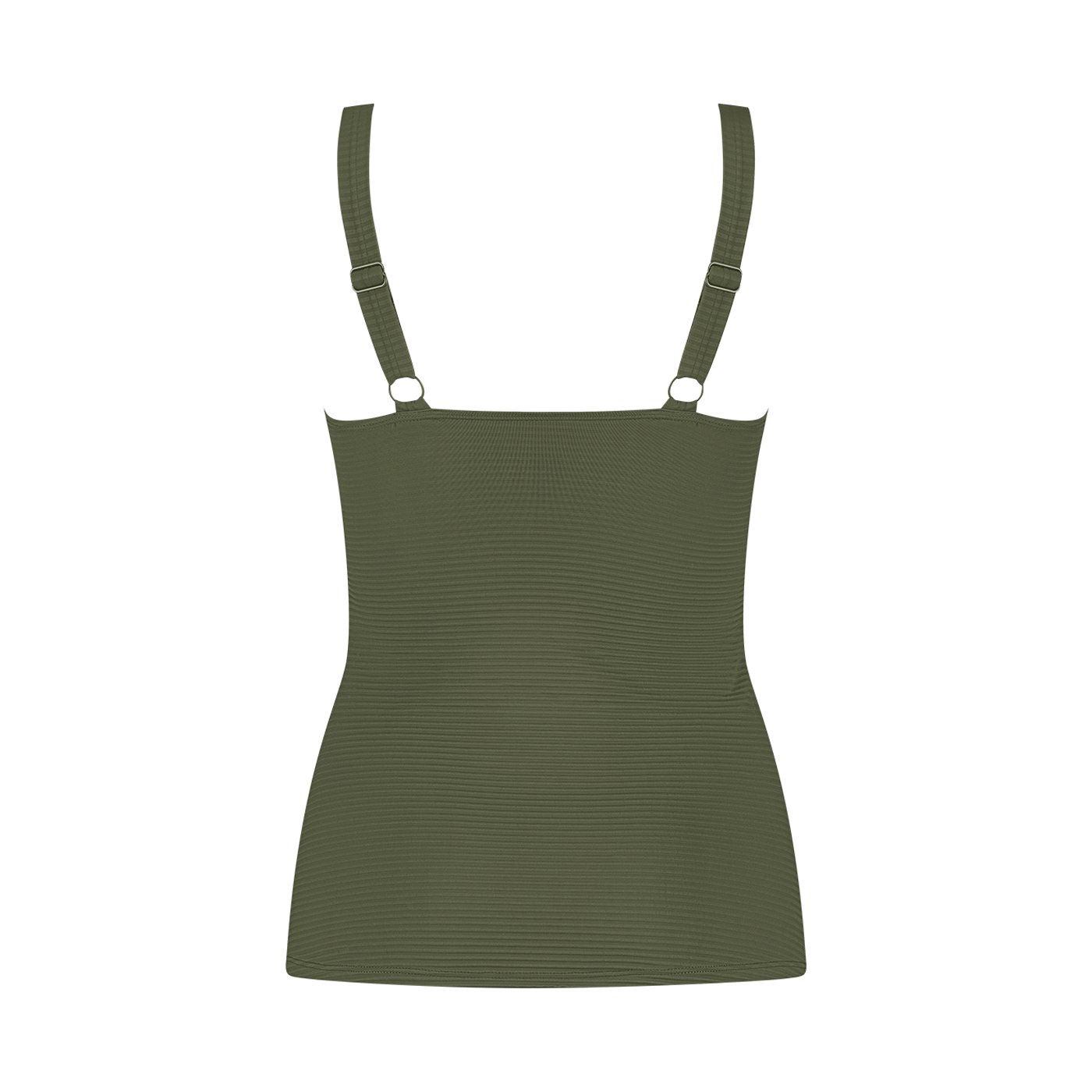 De Tankini Top Deep Olive van Ten Cate Beach heeft een V-hals en kan je goed combineren met een broekje uit de Mix & Match serie.