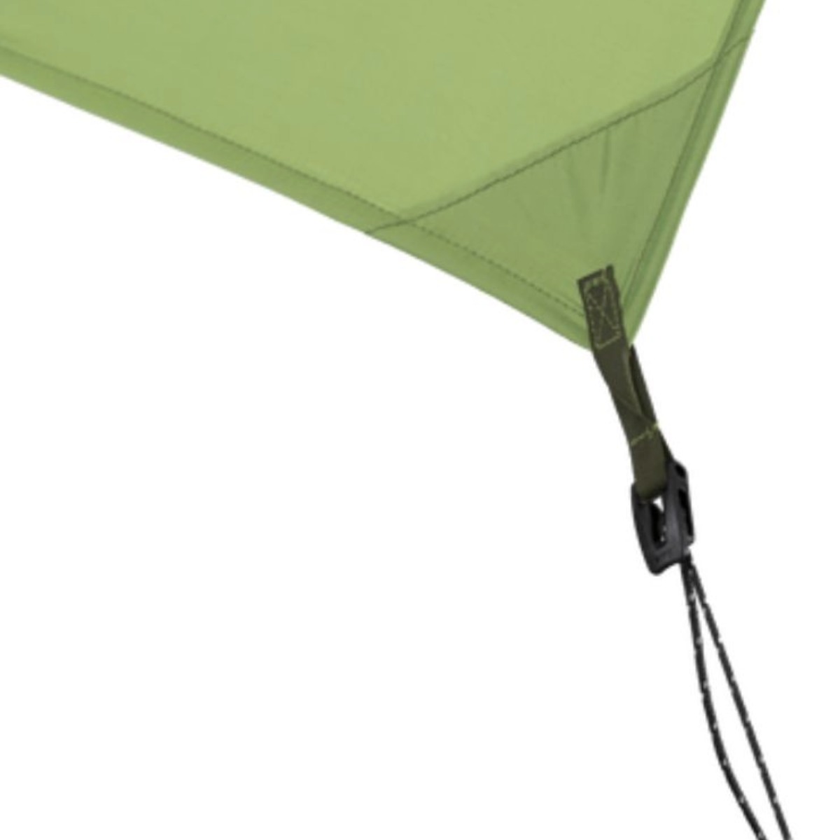 De Exped Tarp II Versa is een robuuste, lichtgewicht tarp met een afmeting van 3,5 bij 2,9 meter. Dankzij de vele bevestigingspunten kun je hem op uiteenlopende manieren opzetten: als luifel bij je tent, als bescherming boven je hangmat of als compacte shelter op de grond. Door het sterke materiaal is hij ook te gebruiken als grondzeil.