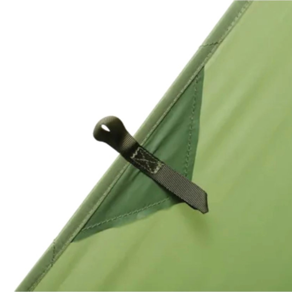 De tarp is gemaakt van stevig 75D taffeta polyester, voorzien van een PU-coating en getapete naden. Dat maakt hem betrouwbaar in natte omstandigheden – met een waterkolom van 3000 mm zit je altijd droog. De DWR-coating zorgt voor extra afwatering.