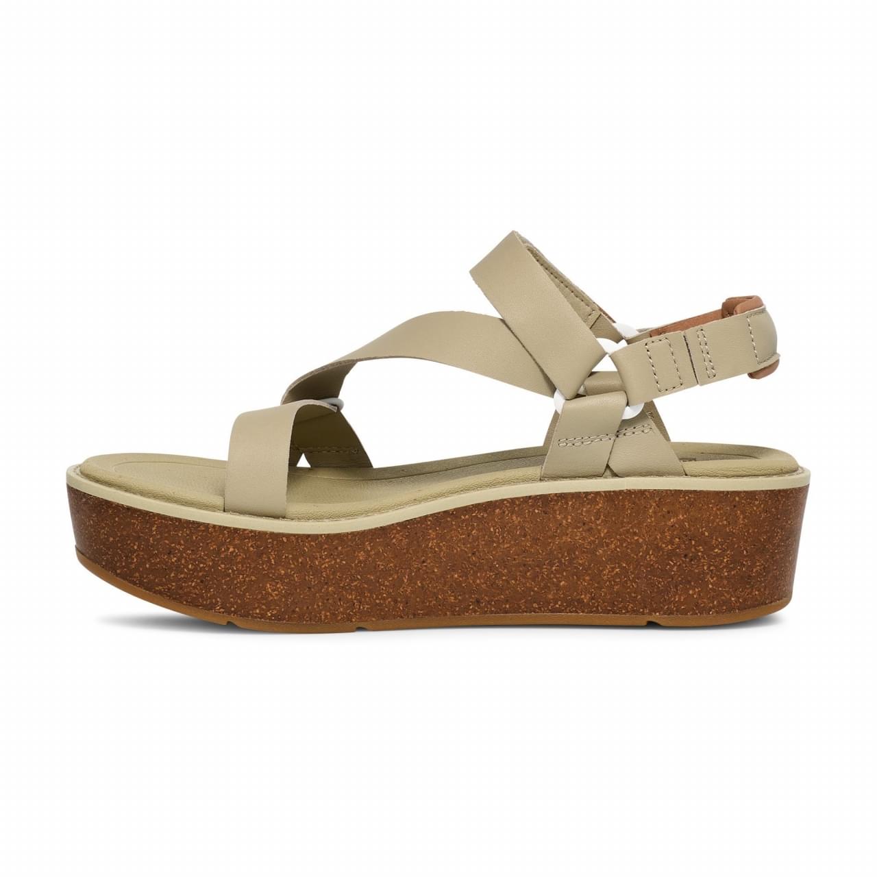 Stap in de zomer met de nieuwe Madera Wedge-sandaal, een combinatie van stijl en comfort. Het luxe leer en de kurken sleehak maken hem perfect voor elke gelegenheid. Met de gemakkelijke klittenbandsluiting en neutrale kleur is deze Teva sandaal overal bij te dragen, of je nu een casual outfit draagt of dat je op "chique" gaat.