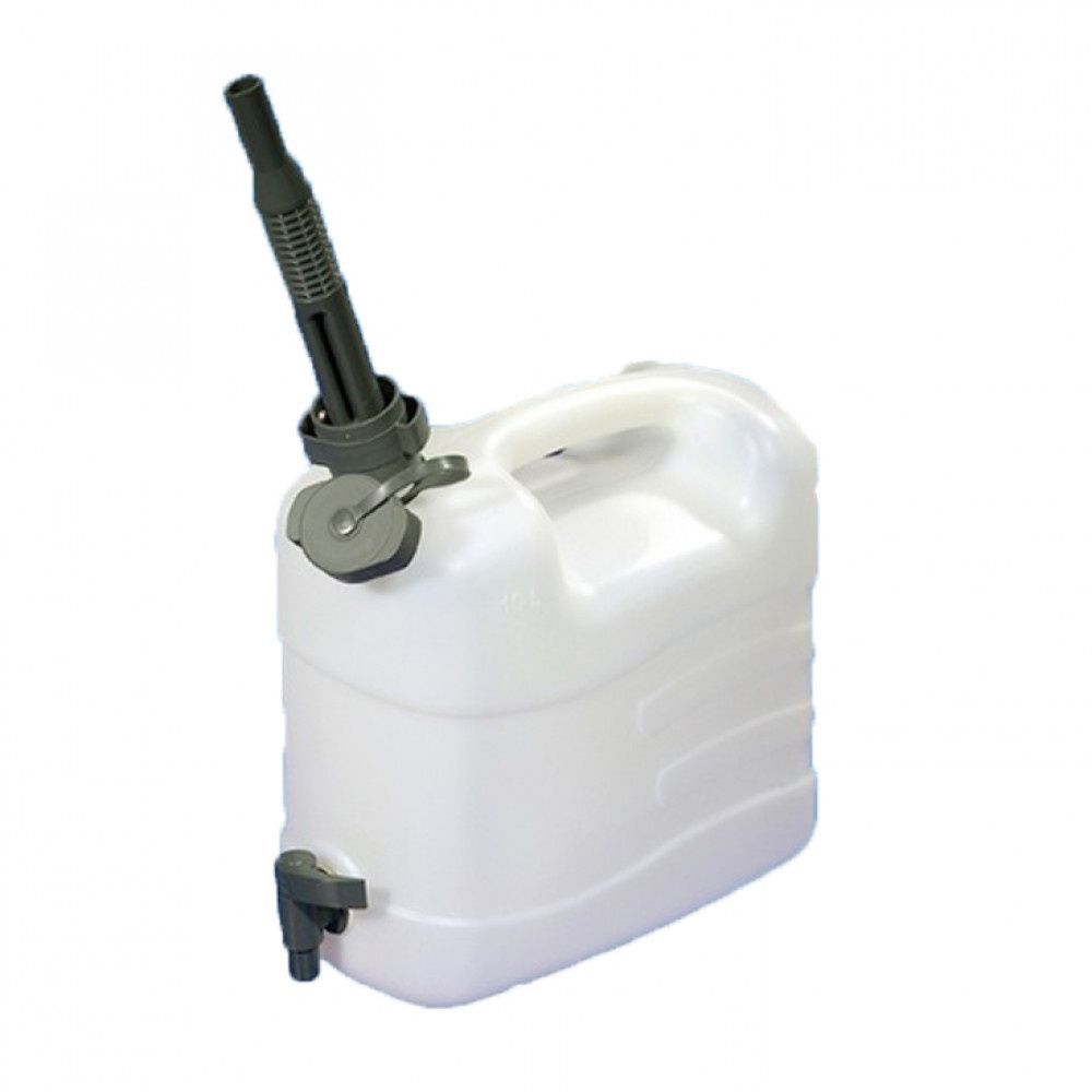 De luxe jerrycan heeft een handige schenkhals en afsluitdop. Bovendien heeft de jerrycan ook nog een schenkkraan. De jerrycan is geschikt voor water, andere vloeistoffen maar niet voor brandstoffen. Door het handvat is de jerrycan makkelijk mee te nemen.