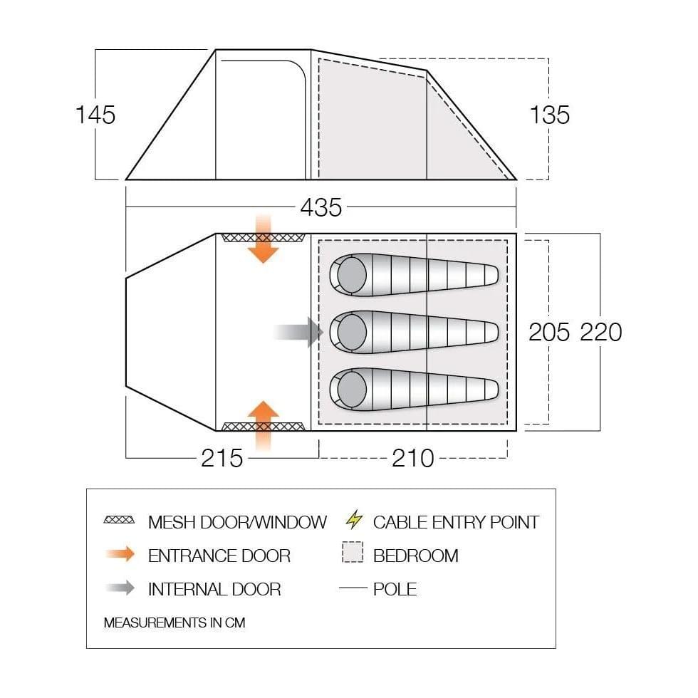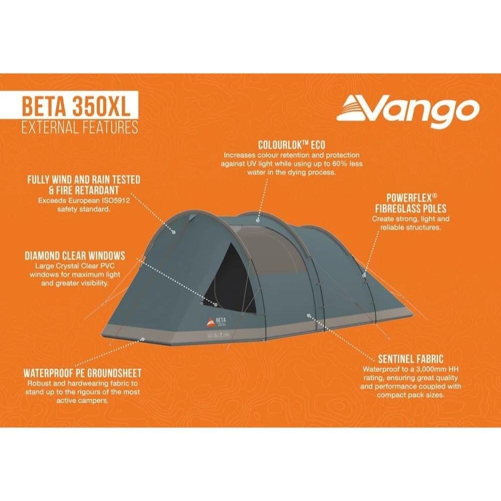 Als je op zoek bent naar ruimte en comfort dan is de Beta 350XL van Vango een echte aanrader. Het slaapgedeelte heeft een afmeting van 210 x 205 cm en biedt ruimte voor drie personen, maar is voor twee personen ook een heerlijke ruime tent. De hoogte is 1,35 meter waardoor je genoeg ruimte hebt om je makkelijk om te kleden voor bijvoorbeeld een dagje strand. Daarnaast heb je nog 4,2 m² aan leefgedeelte met een hoogte van 145 cm, hier kun je alles netjes opbergen en heerlijk een spelletje spelen op een regenachtige dag. Aan beide zijdes bevindt zich een deur in het midden van het leefgedeelte.