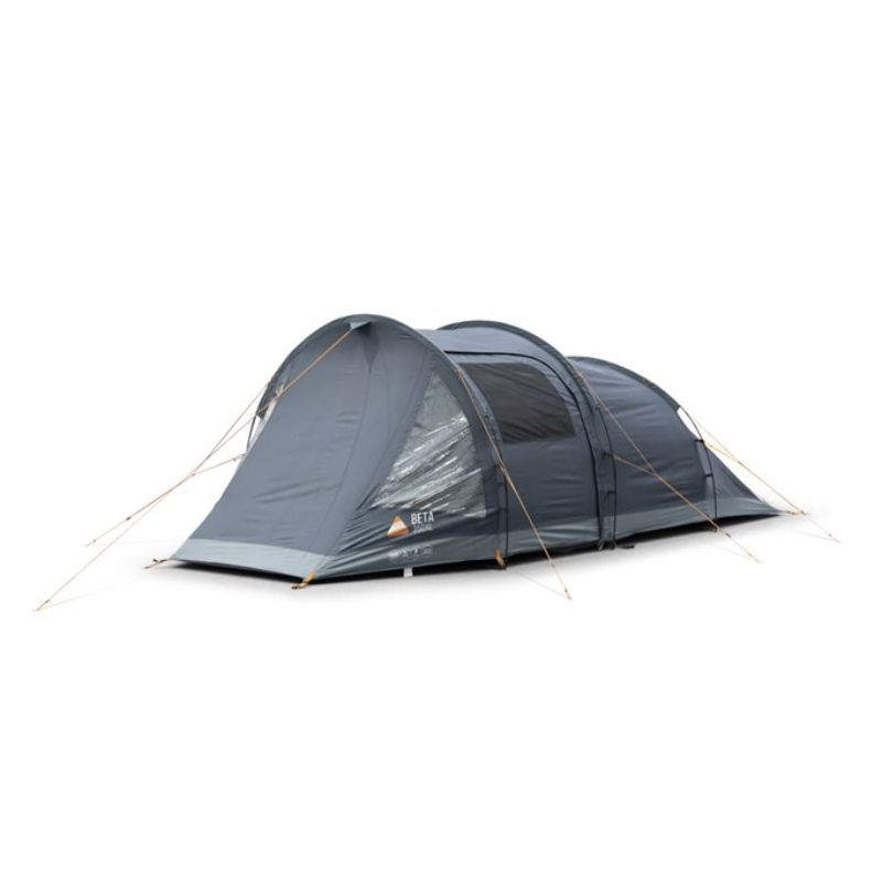 De High Visibility scheerlijnen en reflecterende haringbanden zijn beter zichtbaar in de schemering en de Diamond Clear ramen zorgen voor een mooie lichtinval. In de binnendeur zit een mesh gedeelte, heerlijk voor ventilatie en het houdt die vervelende insecten buiten. Daarnaast heeft deze tunneltent het gepatenteerde Tension Band System (TBSII) die je kunt inzetten bij verraderlijke wind en windstoten. Zo blijft de Beta 350XL ook tijdens stormachtig weer stabiel staan.
