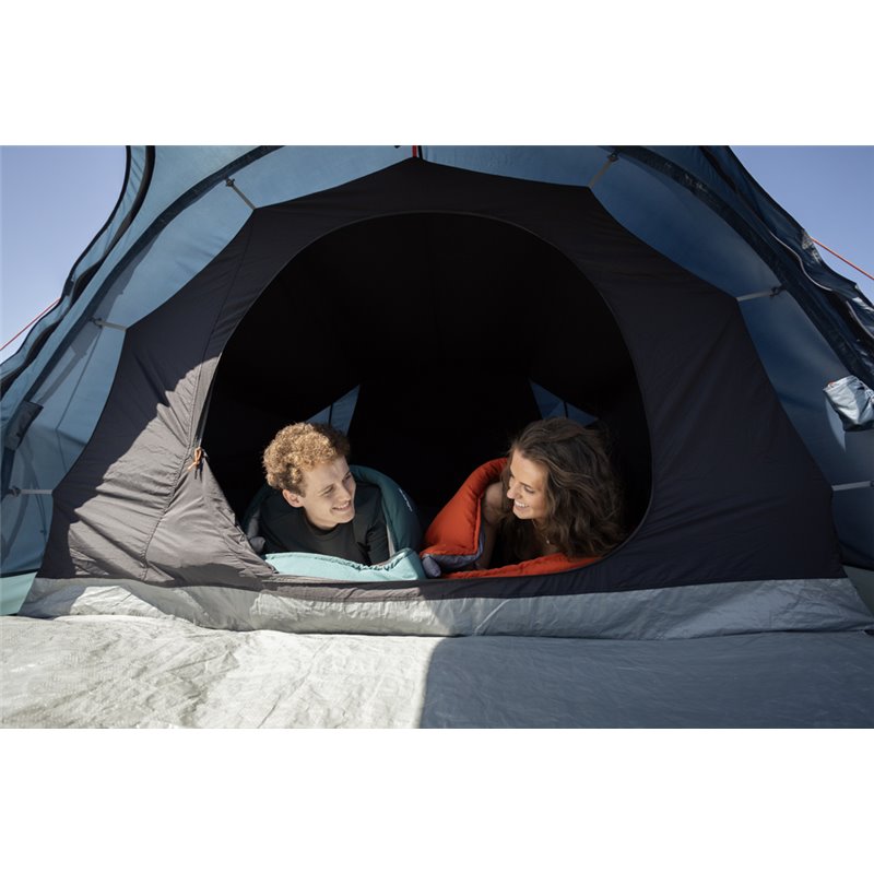 De tunnelvorm van deze 3 persoons tent zorgt voor een optimale ruimteverdeling. De drie PowerFlex Fiberglass Tentstokken zijn kleur gecodeerd, zodat het opzetten van de tent eenvoudiger wordt, en deze zorgen voor een stabiele en betrouwbare constructie. De buitentent is gemaakt van het waterdichte Sentinel Eco Stof; in deze stof is afvalplastic verwerkt en speciaal ontwikkeld met de focus op milieu, kwaliteit en duurzaamheid. De binnentent is gemaakt van Ademend Polyester en voorzien van opbergvakken. In de slaapruimte is het Nightfall Bedrooms toegepast om lekker donker te kunnen slapen. Er is ook een ophangpunt voor het ophangen van je lamp.