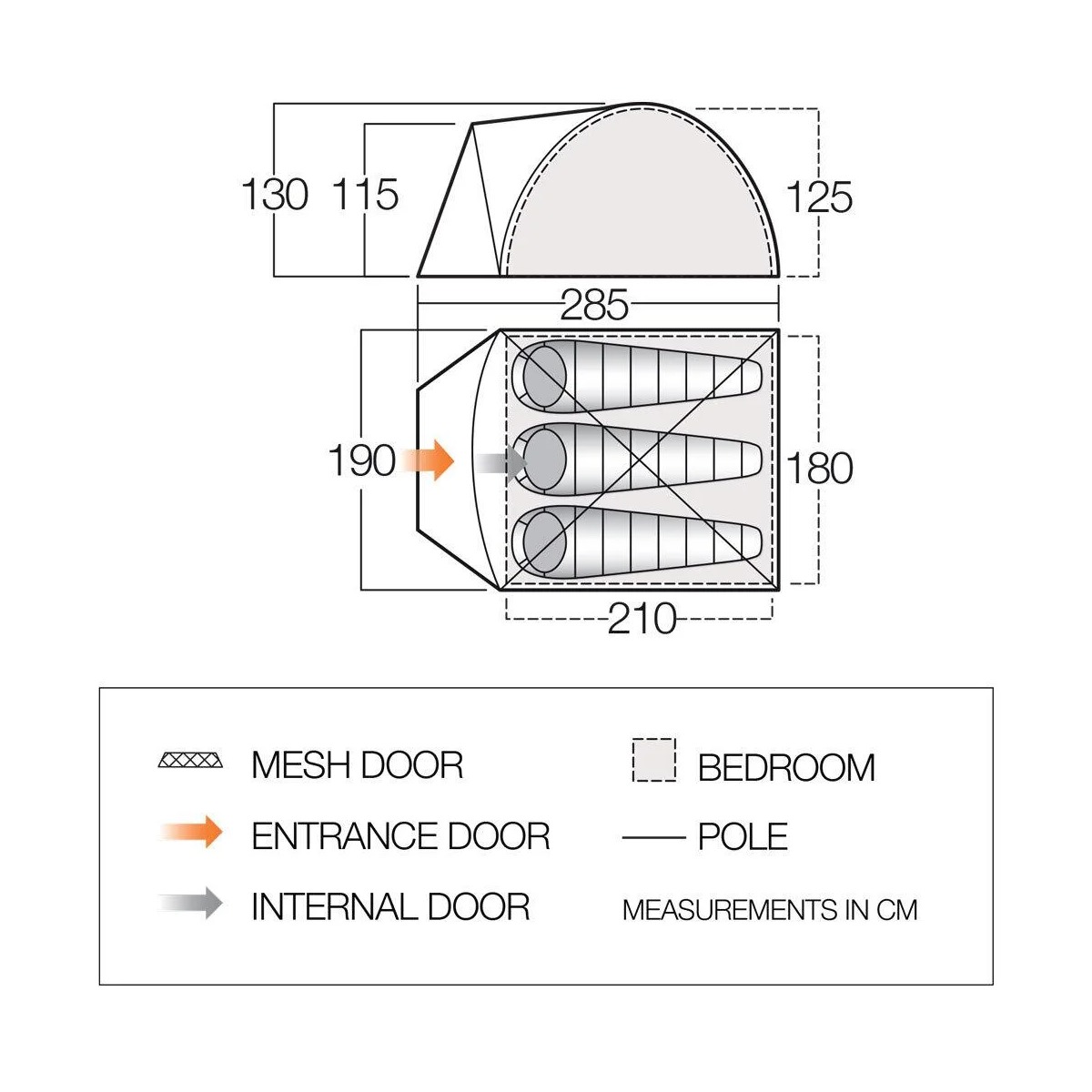| Hoogte binnentent | 115 |