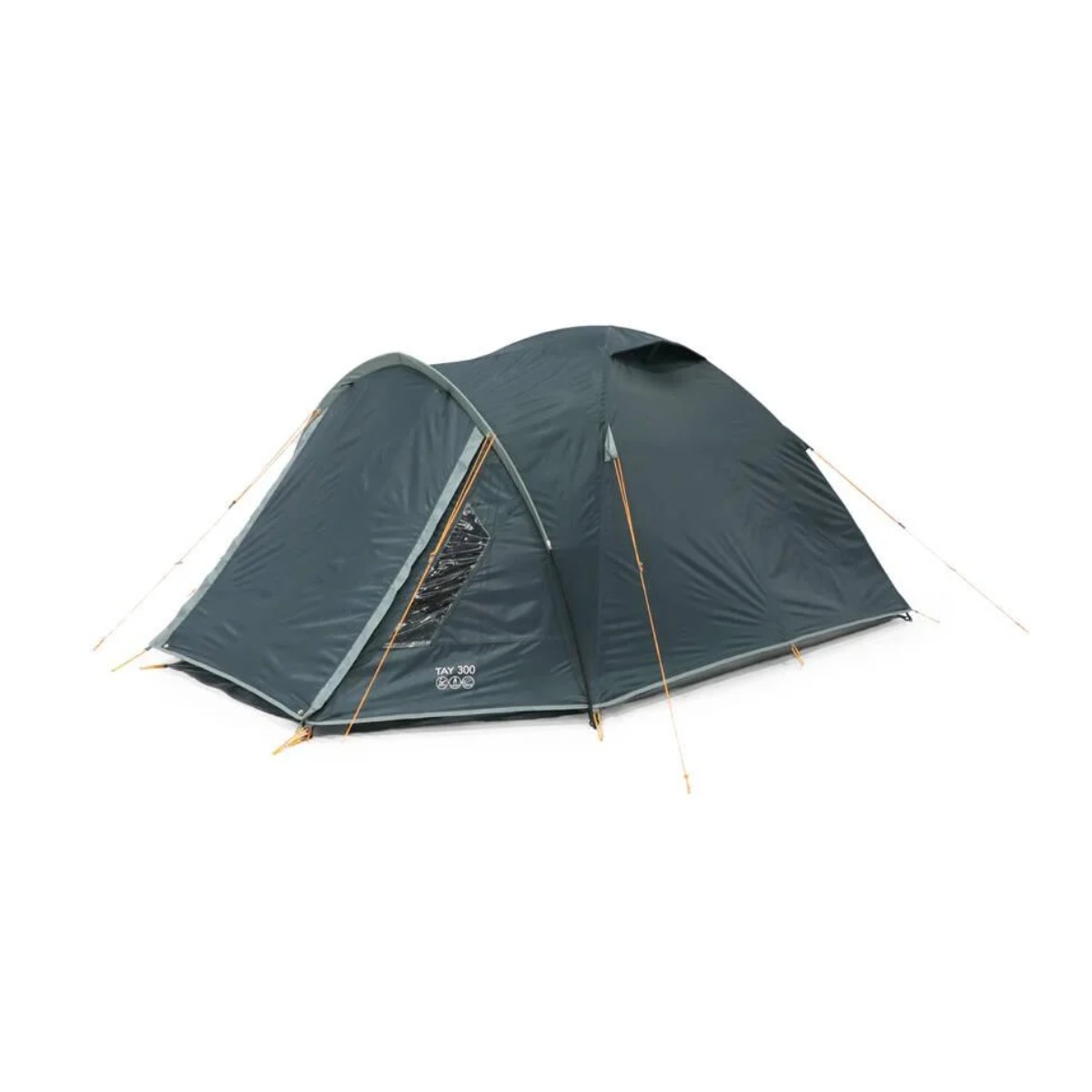 De Tay 300 is gemaakt van waterdicht polyester met een waterkolom van 3000 mm en volledig getapete naden. Het robuuste PE-grondzeil is makkelijk schoon te maken en in het voorportaal ligt een apart grondzeil voor laarzen en bagage, zodat je slaapgedeelte schoon en droog blijft.