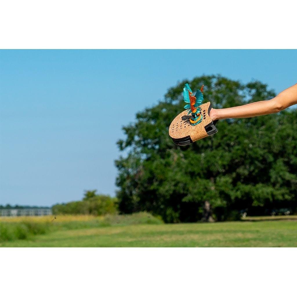 Bij de Voli Paddle Game is het de bedoeling om de Flyer zo lang mogelijk hoog te houden. Gooi de Flyer in de lucht en sla hem naar je tegenstander met de grote handschoen. Aan de binnenkant van de handschoen zit schuim, de buitenkant is van kurk. Dit spel van Waboba kun je overal spelen, in het park, de achterruin, op het strrand of op de camping.