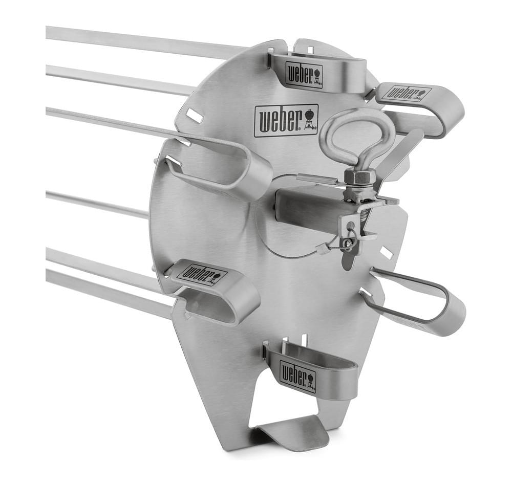 Maak vanaf nu overheerlijke en gelijkmatig gegaarde kebabs op je Weber barbecue. Schuif de Crafted Rotisserie braadspiesenset op het braadspit in je barbecue en bereid de allerlekkerste kebabs met bijvoorbeeld garnalen, groente, fruit en kip.